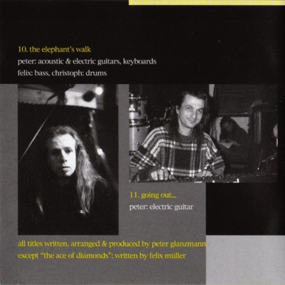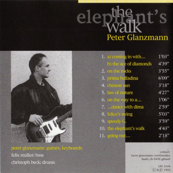 Das Instrumentalalbum "The Elephant's Walk" enstand 1995; Drums und Bass und Synthesizers wurden im Magentix-Studio, Wetzikon aufgenommen; die Gitarren im GlanzStudio Wald. Peter Glanzmann: Gitarren; Synthies / Felix Müller: Bass / Christoph Beck: Drums